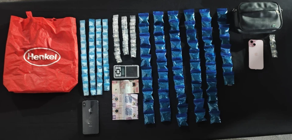 A los ocupantes del vehículo, Ángel “N”, de 24 años, y Arleth “N”, de 22, se les aseguraron 64 bolsas con hierba verde y seca con características similares a la marihuana, 37 dosis de una sustancia con características de cocaína en piedra y 44 dosis de droga similar al cristal.