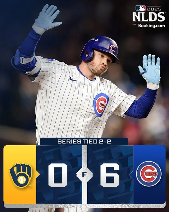 La última vez que los Cachorros anotaron en el primer acto de al menos cuatro juegos consecutivos en una postemporada fue en el 2003. Los Cachorros también son el primer equipo en la historia de MLB con un jonrón en el primer capítulo en cuatro juegos de playoffs consecutivos dentro de los mismos playoffs (Busch, Suzuki, Busch, Happ).