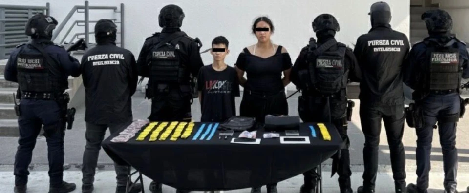 Se informó que la detención se registró en la colonia Villas Regina, en las calles Villas Concordia y Villa Covadonga, donde los elementos observaron a Michel “N”, de 21 años, y Joana “N”, de 22, quienes, a simple vista, se notaba consumían sustancias.