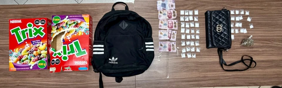 Al ser interceptados, les decomisaron 48 dosis de una sustancia similar al cristal y dos cajas de cereal.