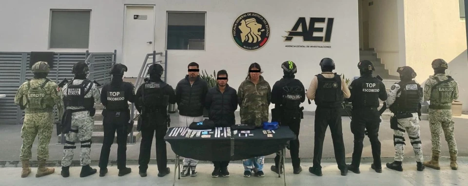 Los presuntos fueron identificados como Bryan “N”, de 27 años; Fernando “N”, de 30; Laura “N”, de 45; y un adolescente de 14, cuya captura ocurrió al mediodía del sábado en la colonia Fomerrey 35, en Monterrey.