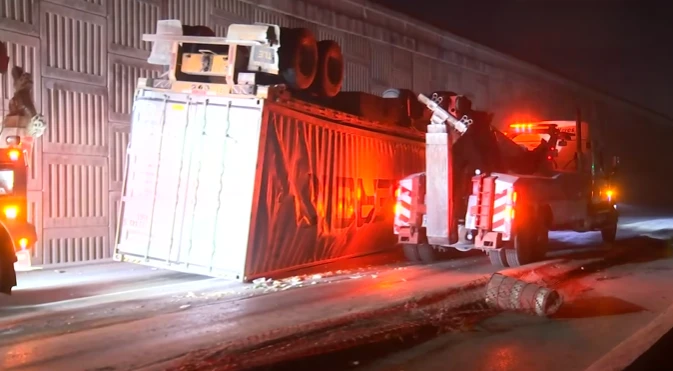 El chofer de un tráiler que transportaba rines perdió el control de la segunda caja que remolcaba, la cual cayó sobre la lateral mientras cruzaba un paso a desnivel en el Libramiento Noreste, alrededor de las 23:00 horas del lunes, en Escobedo, Nuevo León.