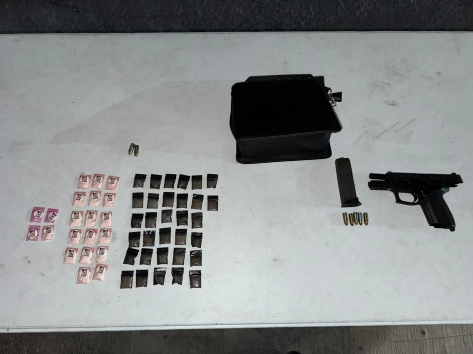 A los detenidos, les aseguraron 52 envoltorios con presuntas drogas, similares al cristal y la cocaína; además, una pistola con cartuchos hábiles de .9 milímetros.