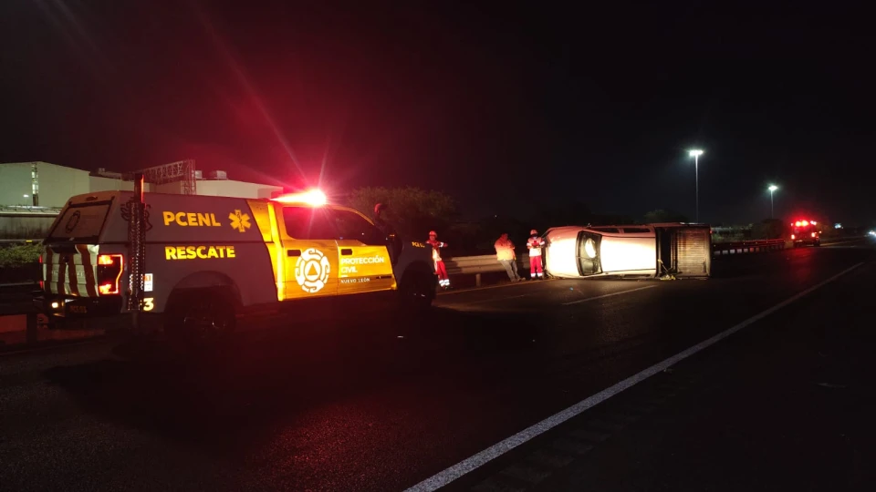 Una camioneta se volcó cuando circulaba por la autopista a Reynosa, a la altura del kilómetro 13, en el municipio de Guadalupe, Nuevo León.
