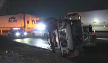 Al intentar tomar una curva, un tráiler volcó en la salida hacia el Libramiento Noroeste cuando circulaba de norte a sur por la carretera a Nuevo Laredo, en Apodaca, Nuevo León.