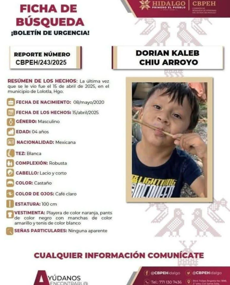 La desaparición del menor, originario del Estado de México, se reportó el pasado 15 de abril del municipio de Lolotla, donde había acudido de visita con familiares.