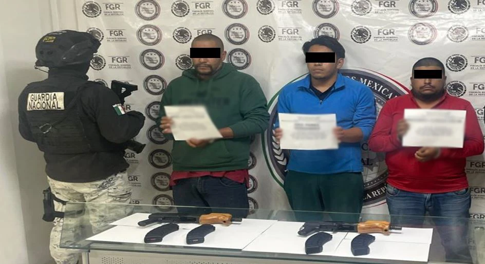 En Baja California en Mexicali, se detuvo a tres personas, se aseguraron dos armas largas, cuatro cargadores, 115 cartuchos y dos tractocamiones acoplados a cajas secas.