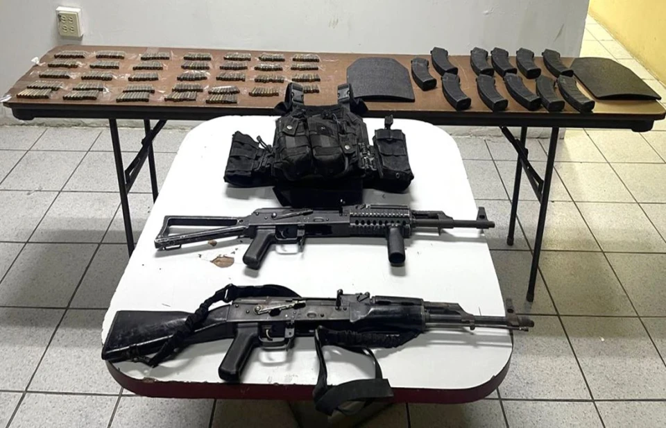 Asimismo, en Navojoa, Sonora, los efectivos aseguraron dos armas de fuego, 23 cargadores, mil 002 cartuchos, mil 559 dosis de metanfetamina, tres chalecos tácticos, tres placas balísticas, un uniforme táctico y un vehículo.