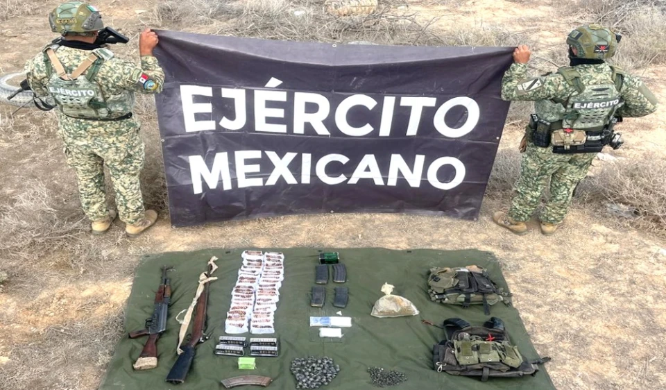 En Baja California, en el poblado de San Quintín, elementos del Ejército Mexicano, al realizar recorridos de seguridad, incautaron dos armas largas, cinco cargadores, mil 474 cartuchos, dosis de marihuana y dos chalecos tácticos.