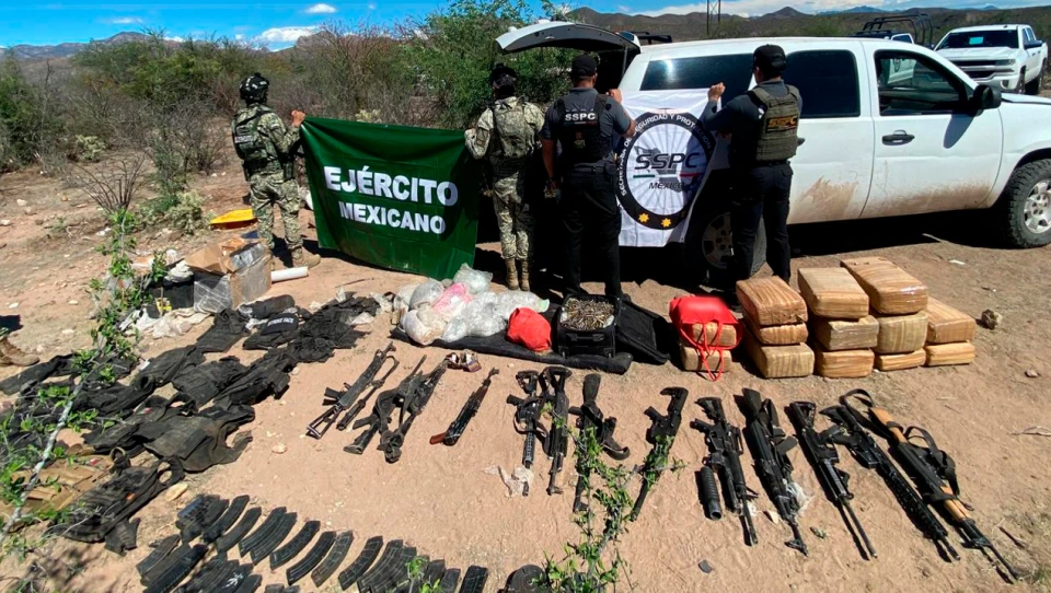 En Sinaloa, cinco personas, dos de ellas menores, fueron detenidas con armamento y vehículos robados, mientras que en Sonora se decomisaron armas, cartuchos, droga y equipo táctico.