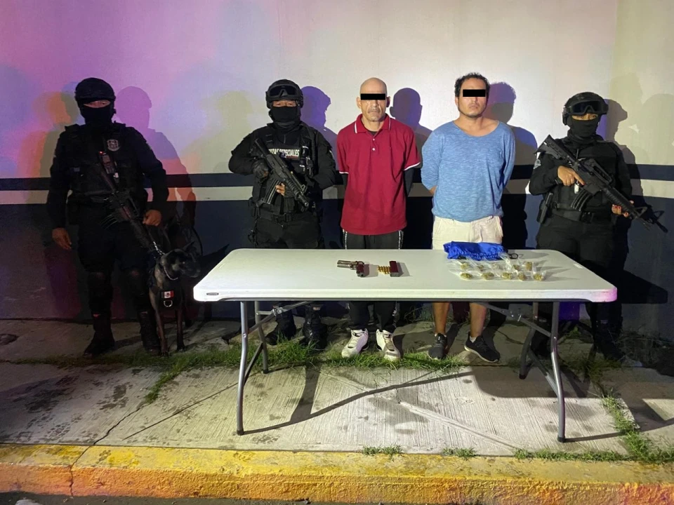 De acuerdo con el reporte, policías municipales realizaban labores de vigilancia cuando observaron a dos hombres que circulaban en una motocicleta con las luces apagadas. Al marcarles el alto, los sospechosos ignoraron la orden y fueron detenidos metros más adelante.