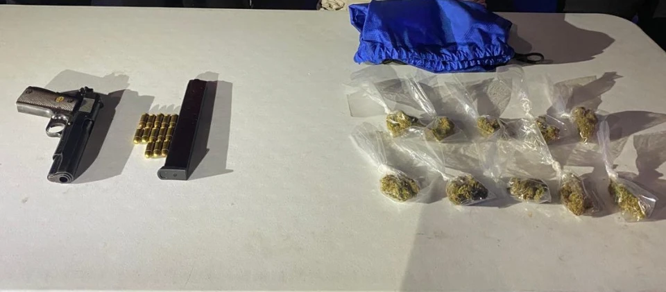 Durante la revisión, a José Luis se le aseguró un arma de fuego calibre .45, con un cargador y 13 cartuchos útiles. En tanto, Alfredo Vinicio portaba una mochila con 10 envoltorios que contenían hierba verde con las características de la marihuana.