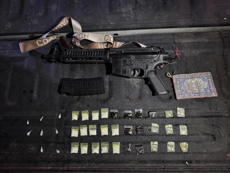 Durante la inspección, los agentes hallaron en el portavasos un monedero rosa con 38 envoltorios de lo que podría ser cocaína en piedra y la droga conocida como cristal, mientras que en el asiento del copiloto localizaron un arma larga con su cargador.