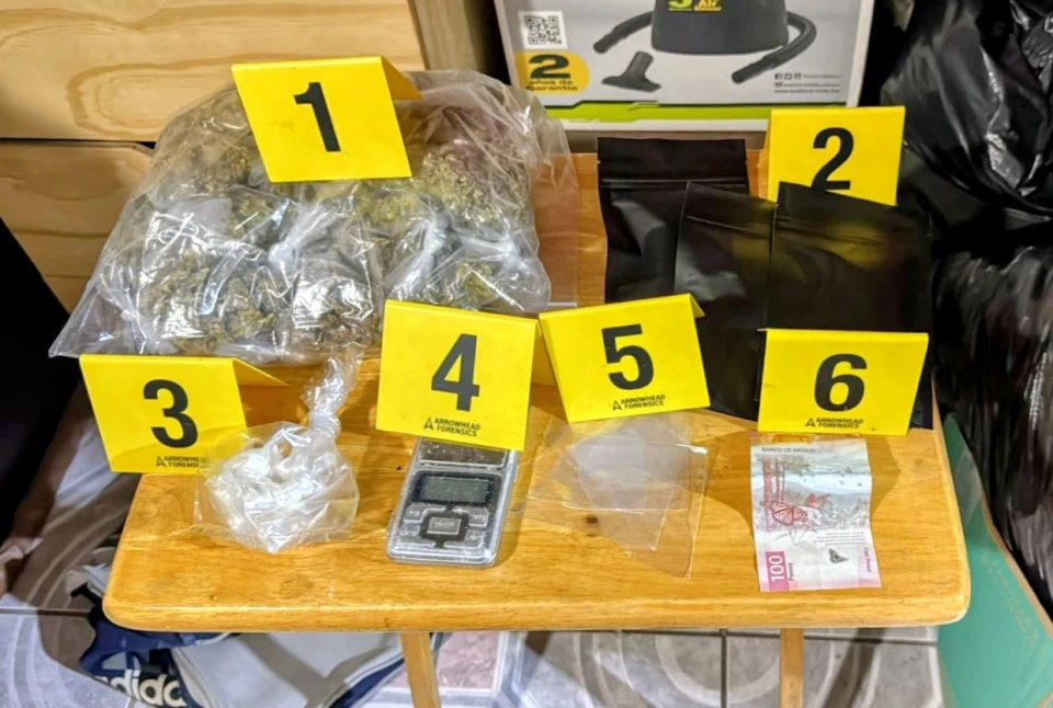 También se decomisó una báscula, fragmentos de bolsas de plástico y dinero en efectivo.