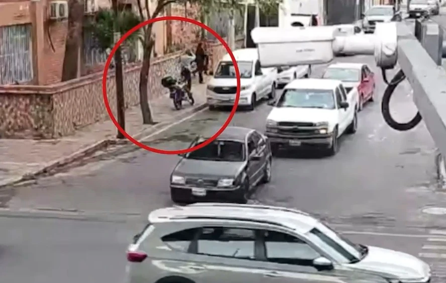 Elementos de la Policía de Monterrey detuvieron a un hombre en el centro de la ciudad tras ser detectado circulando en una motocicleta con una placa que no correspondía al vehículo.