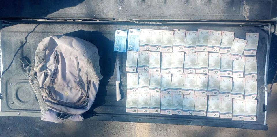 Minutos después, arribó un empleado del establecimiento, quien señaló que momentos antes el detenido lo había amenazado con un arma blanca para exigir el efectivo, entregando la cantidad de 900 pesos.
