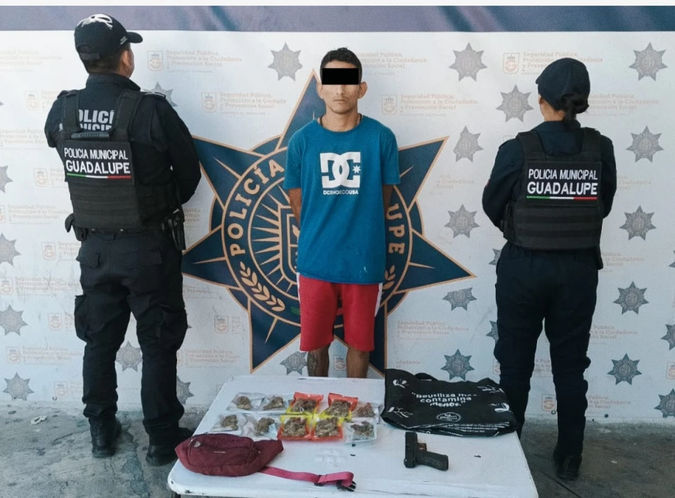 Policías de Guadalupe, Nuevo León, detuvieron en calles de la colonia David Cavazos a un presunto narcomenudista señalado por cometer 35 robos a tiendas de conveniencia en distintos sectores del municipio.