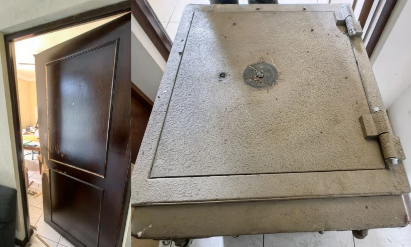 Al ingresar, los oficiales localizaron al sospechoso golpeando una caja fuerte e intentando abrirla, la cual ya había sido desprendida de la pared donde se encontraba incrustada, motivo por el cual fue detenido.