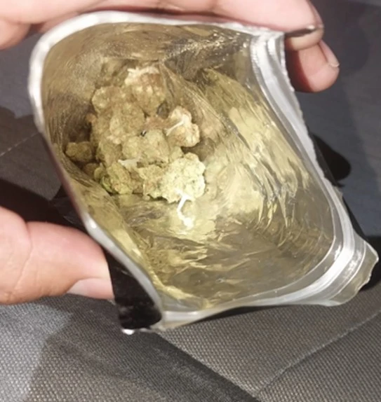 Tras marcarles el alto, los oficiales realizaron una revisión y aseguraron cuatro bolsas con una sustancia similar al cristal y otra con hierba con características de marihuana.