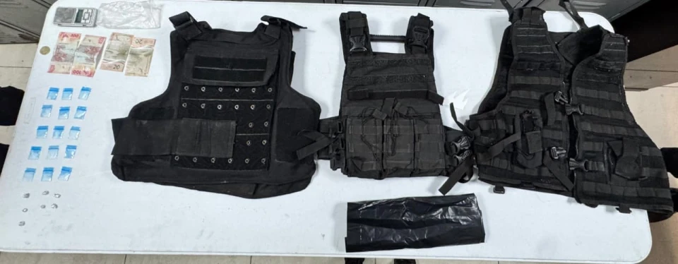 La Policía detuvo a Rogelio C., de 32 años, tras ser sorprendido en posesión de 22 envoltorios con presunta cocaína, tres chalecos antibalas, una báscula gramera y 250 pesos en efectivo, relacionados con la presunta distribución de drogas, en la colonia Terminal, en Monterrey, Nuevo León.