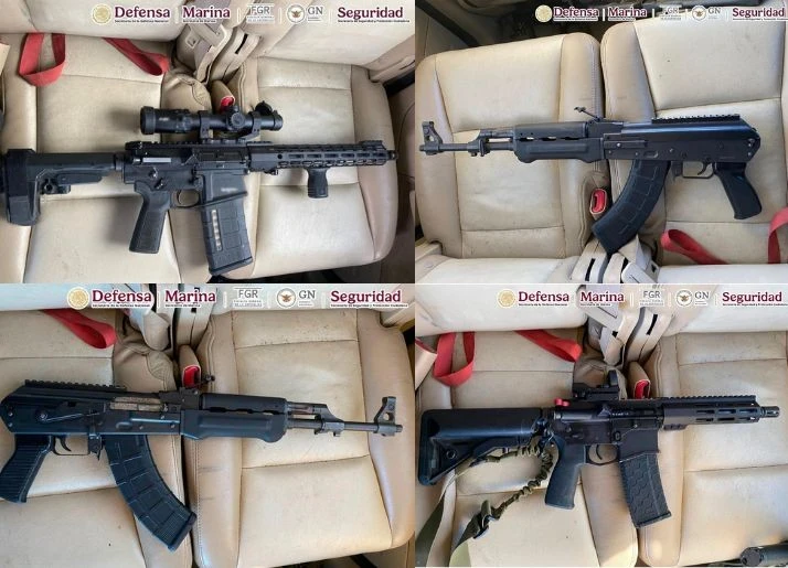 El primer hecho se registró durante recorridos de vigilancia en el municipio de Tijuana. Agentes observaron una camioneta con placas de California, en la que viajaban cinco personas, además de dos más que caminaban cerca del vehículo. Al marcarles el alto, adoptaron una actitud evasiva, por lo que se procedió a realizar una inspección.