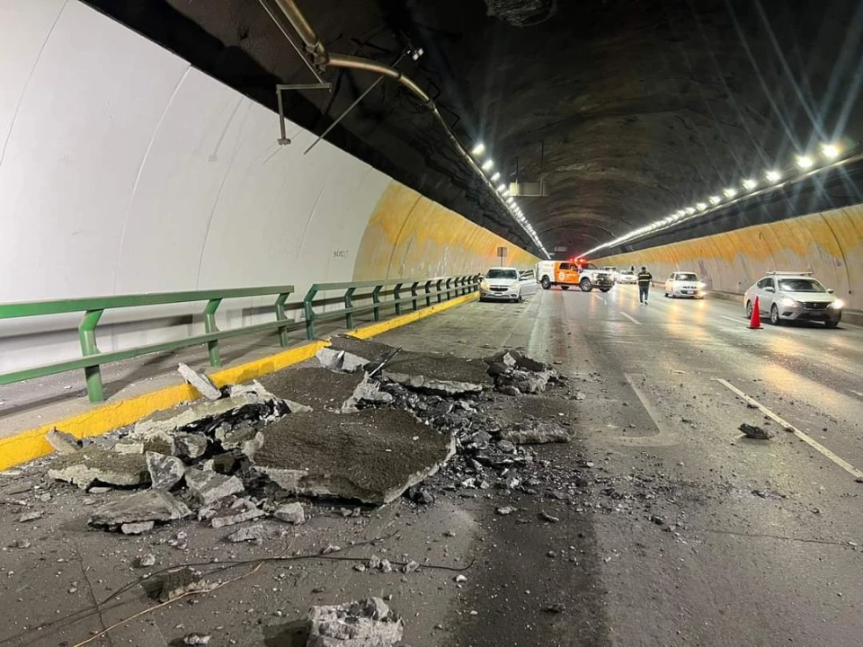 Parte de la loza del techo del túnel de la Loma Larga se desprendió cerca de la medianoche en circulación de Monterrey a San Pedro Garza García, Nuevo León.