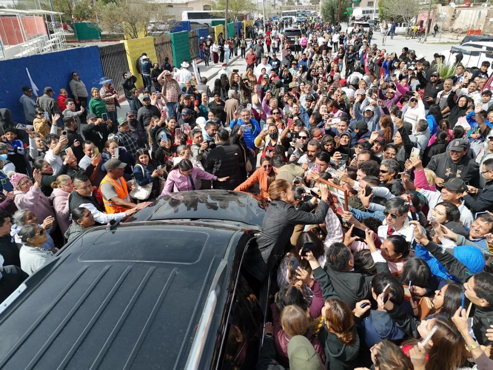 Al retirarse del lugar, no se desplegó ningún operativo extraordinario de seguridad en torno a ella; incluso se sentó en la puerta de la camioneta para abrazar a la gente, saludarla y recibir peticiones.