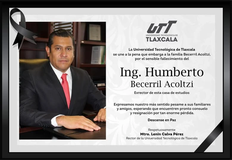 Becerril Acoltzi fue rector de la UTT durante el gobierno de Marco Antonio Mena Rodríguez y recientemente incursionó en actividades empresariales. La universidad emitió un mensaje de condolencias, reconociendo su legado académico y compromiso con la educación superior tecnológica.
