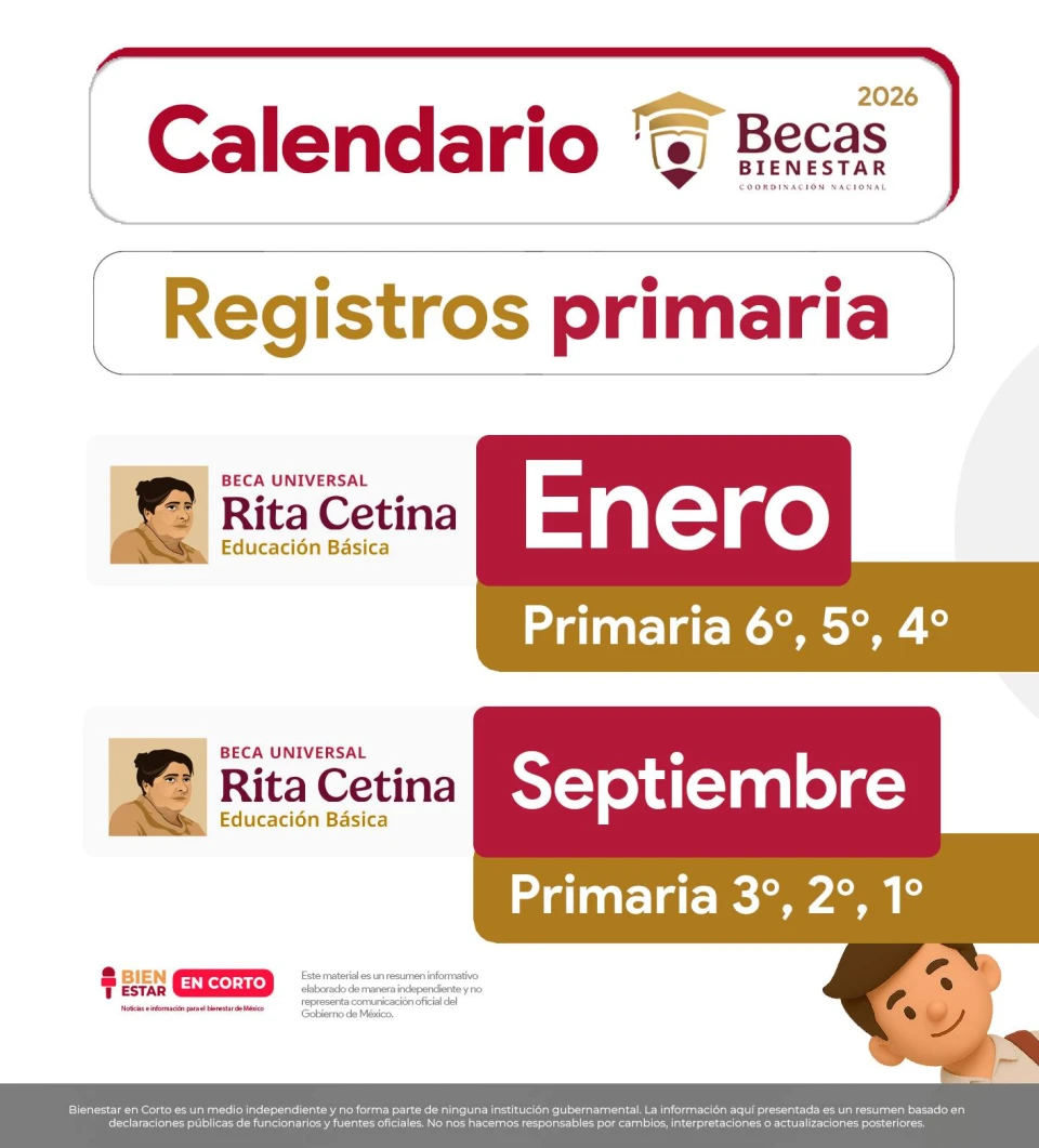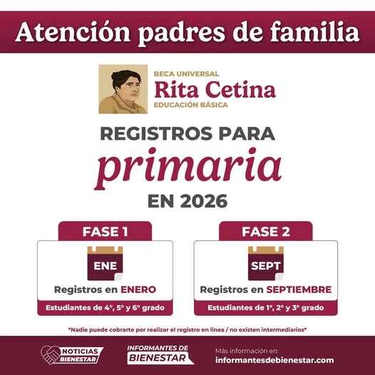 El secretario de Educación Pública, Mario Delgado, anunció que en 2026 más de 12 millones de estudiantes de primaria obtendrán la Beca Universal Rita Cetina Gutiérrez, lo que elevará a más de 21 millones el total de beneficiarios de las Becas para el Bienestar.