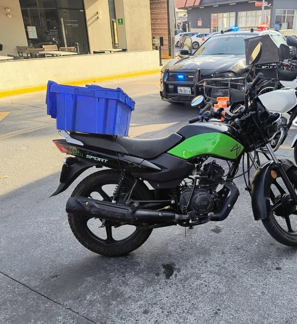 Policías municipales detuvieron a un joven que circulaba en una motocicleta con reporte de robo en la colonia Cumbres Tercer Sector, en Monterrey, Nuevo León.