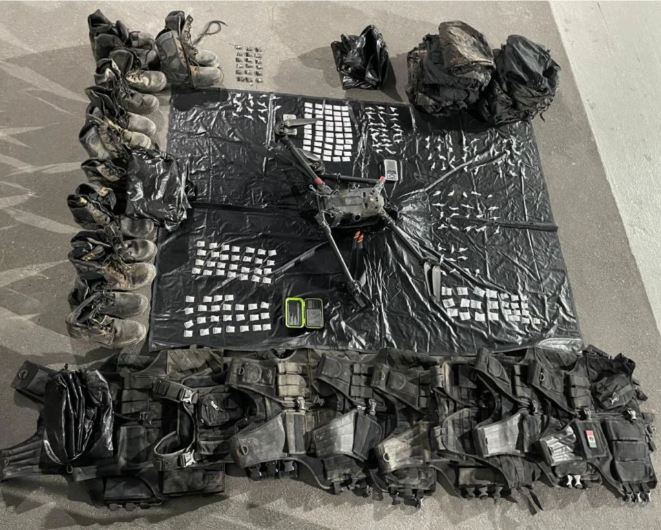 En un primer despliegue, elementos de Fuerza Civil capturaron en la calle Camino a San Agustín a José “N”, de 23 años; Eduardo “N”, de 25; Priciliano “N”, de 48; Reyna “N”, de 35; Alberto “N”, de 23; Gerardo “N”, de 30; Blanca “N”, de 41; y Luis “N”, de 18 años. Durante una revisión precautoria, a los detenidos se les aseguraron nueve chalecos balísticos, un dron dañado, 19 pantalones tácticos, ocho pares de botas, 246 dosis de una sustancia con características similares al cristal y tres básculas digitales.