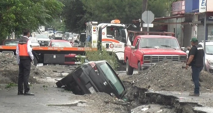 Uno de los municipios que registró más siniestros fue Guadalupe, en la colonia Fomerrey 18, un padre de familia cayó con su vehículo en una zanja de al menos dos metros de ancho, por lo que exigió la reparación de daños.