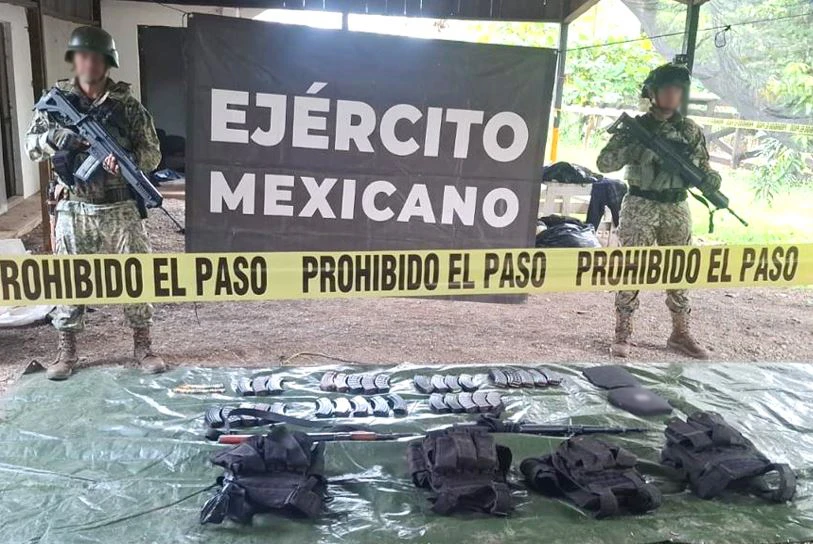 En Amatenango de la Frontera, Chiapas, elementos del Ejército Mexicano aseguraron dos armas largas, 32 cargadores, 900 cartuchos, cuatro chalecos tácticos y dos placas balísticas.