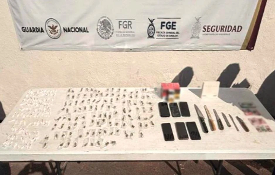 En Culiacán, la Secretaría de Marina (SEMAR), Secretaría de Seguridad y Protección Ciudadana, Guardia Nacional, la Fiscalía General de la República y Fiscalía y Policía estatal, junto con el Ejército, realizaron una inspección en un módulo del centro penitenciario Aguaruto, donde se aseguraron seis teléfonos celulares, diversas dosis de sustancias ilícitas, seis objetos con punta, 13 cajetillas de cigarros, un módem y dinero en efectivo.