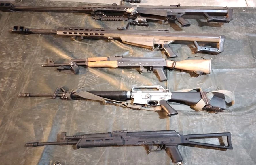 En Badiraguato, Sinaloa, específicamente en la comunidad de Huixiopa, se decomisaron dos fusiles Barrett y tres armas largas.