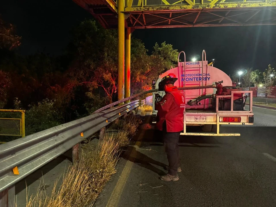 Un incendio en el lecho del río Santa Catarina fue sofocado por los cuerpos de auxilio la madrugada de este martes a la altura del parque España, en Monterrey, Nuevo León.
