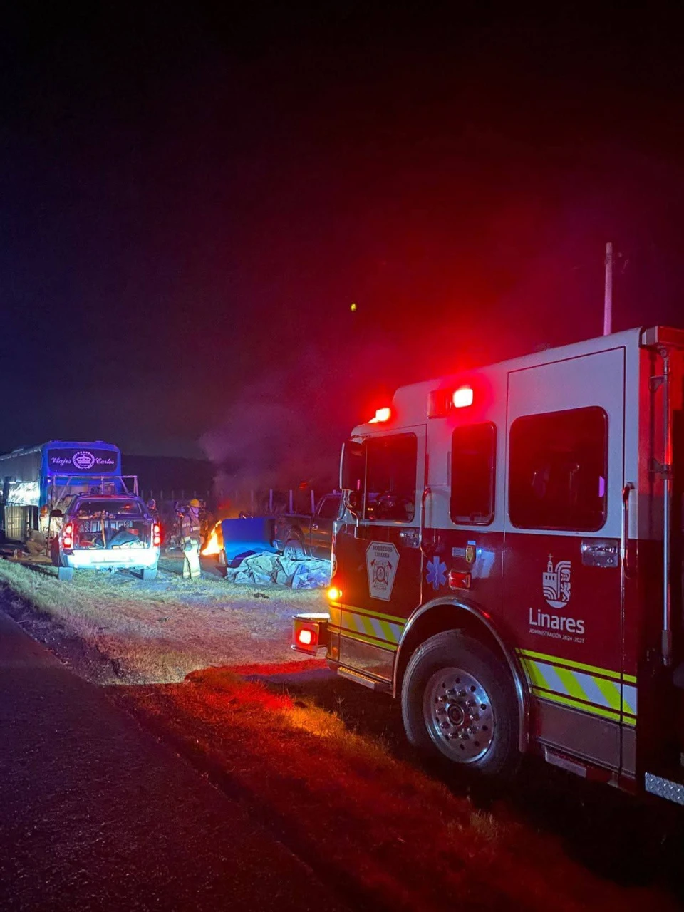 Bomberos del municipio se movilizaron a la zona, donde controlaron las llamas, aparentemente causadas por quienes realizaban maniobras mecánicas en un camión de pasajeros averiado a un lado de la vía.