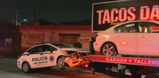 Al responder a un presunto asalto en una tienda de conveniencia, una agente de policía de San Nicolás de los Garza, Nuevo León, resultó lesionada tras chocar en su patrulla luego de participar en una persecución la noche del martes en la colonia Residencial Roble.