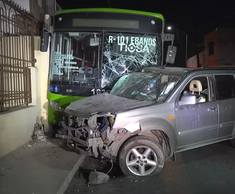 Aparentemente, el conductor del vehículo ignoró la señal de alto en el cruce de Bernardo Reyes y Anastacio Bustamante, por lo que chocó con la unidad de transporte público y ambos se proyectaron contra la fachada de una vivienda.