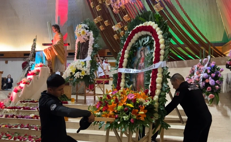 Como cada año, oficiales de la Policía de Monterrey realizaron su tradicional peregrinación, en la que llevaron la Rosa de Plata a la Virgen de Guadalupe, en la Basílica ubicada en la colonia Independencia.