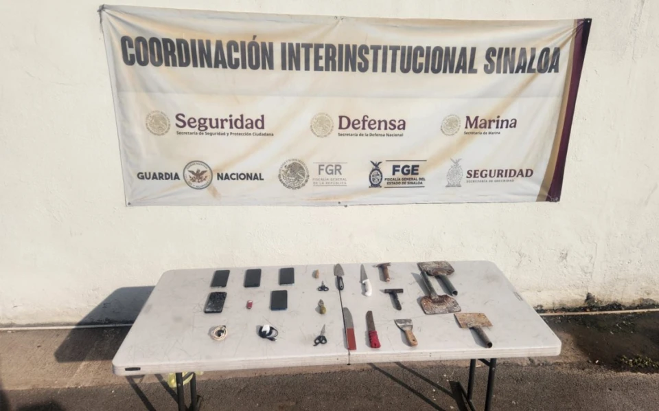 En Culiacán, Sinaloa, se aseguraron teléfonos celulares, una memoria USB y diversos objetos punzocortantes.