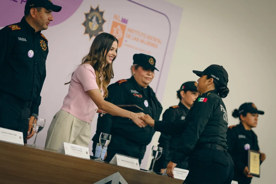 La titular de AMAR a Nuevo León, Mariana Rodríguez Cantú, entregó reconocimientos a mujeres policías de la corporación Fuerza Civil, a quienes destacó no solo representan autoridad, sino transformación social.