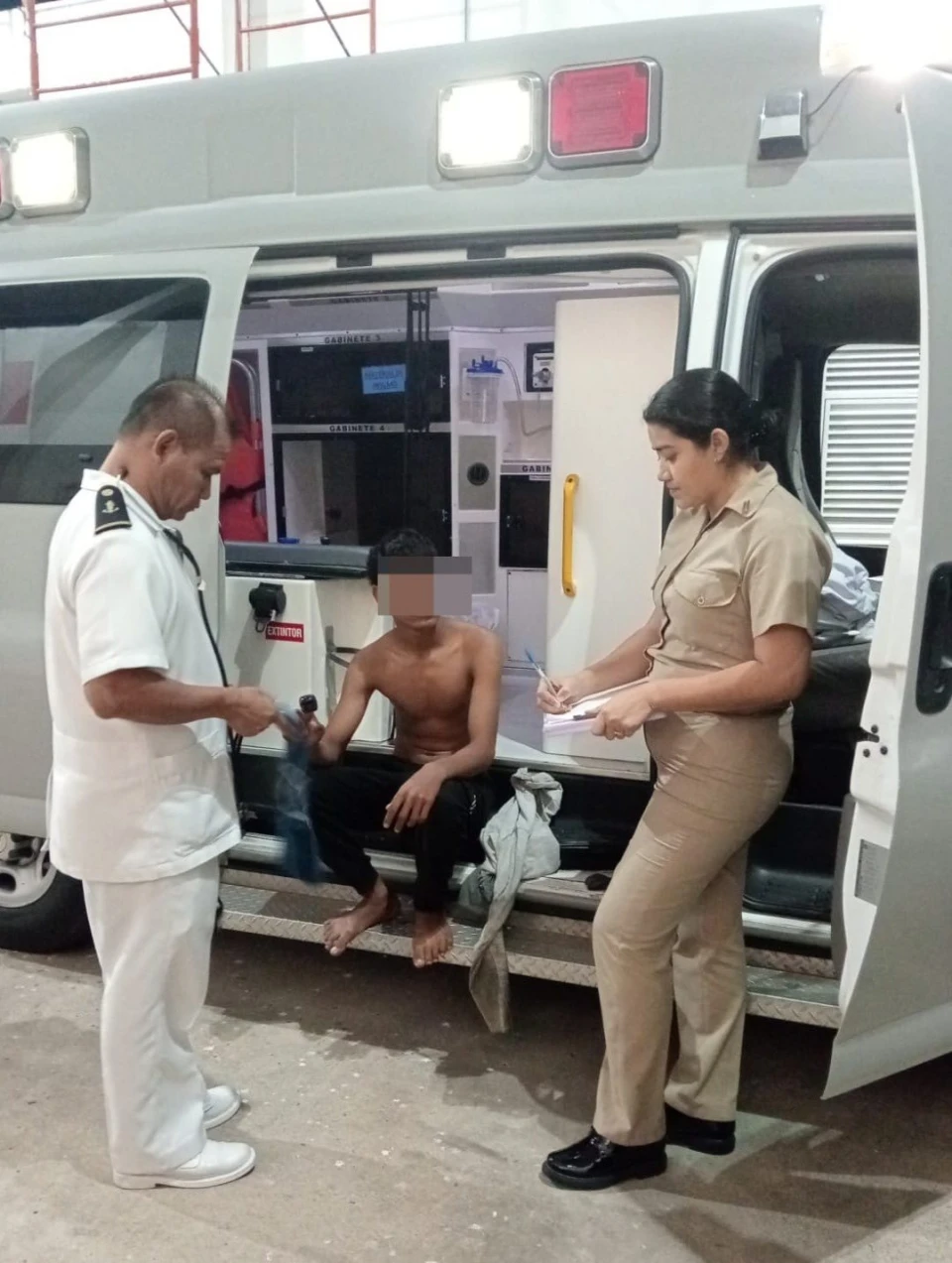 De acuerdo con imágenes difundidas, los tres náufragos fueron encontrados flotando dentro de una hielera. Posteriormente, fueron trasladados a la base naval, donde recibieron asistencia médica.