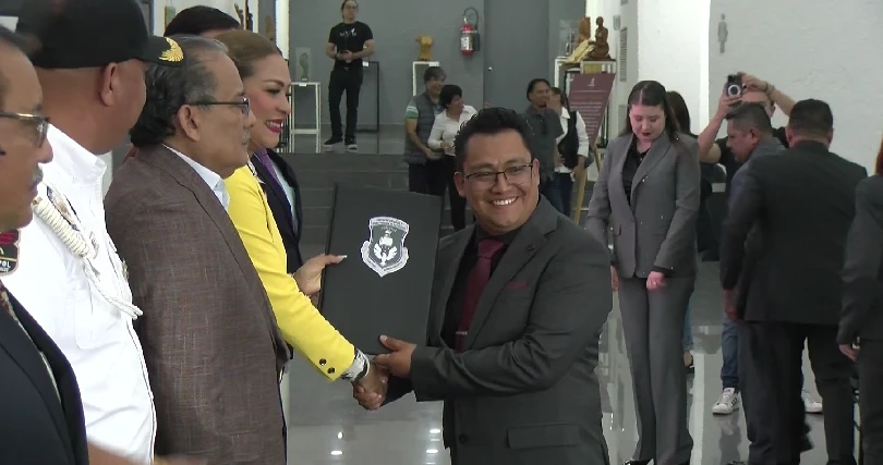 Durante la entrega de títulos a los policías egresados de diversas especialidades, el alcalde de Escobedo, Nuevo León, Andrés Mijes, resaltó que los oficiales mejor capacitados fortalecen la seguridad de la comunidad.