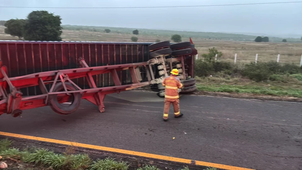 La volcadura de un tráiler causó caos vial en la Carretera Nacional la noche del lunes, a la altura del municipio de Linares, Nuevo León, luego de que un contenedor se desprendiera y bloqueara la circulación.